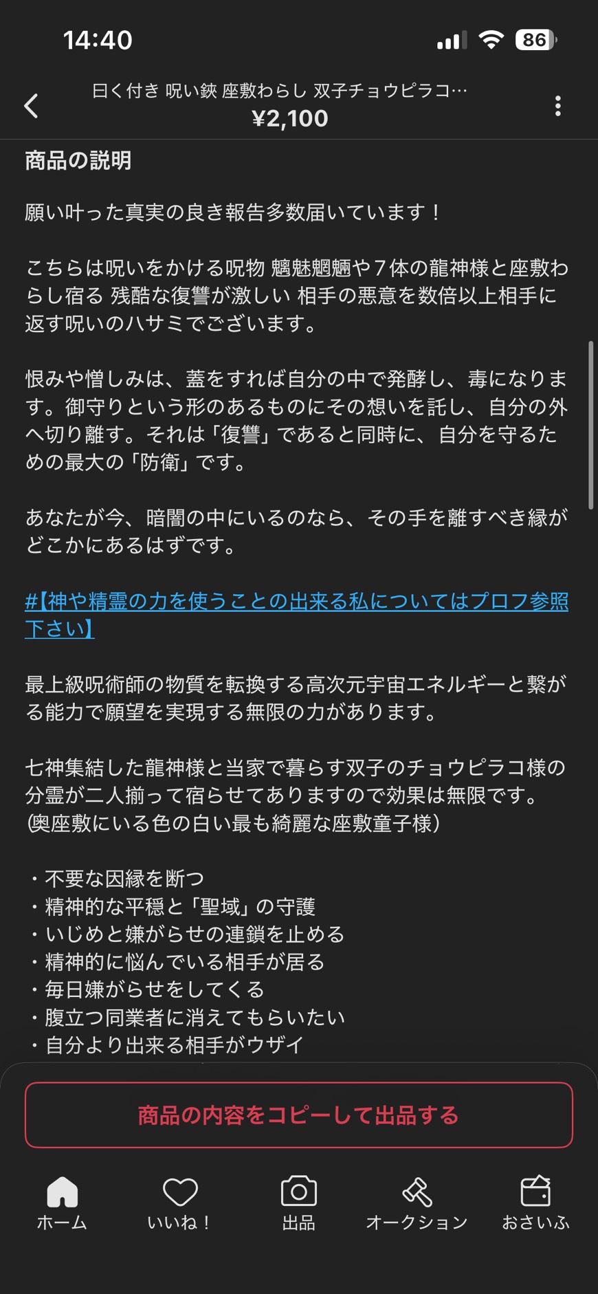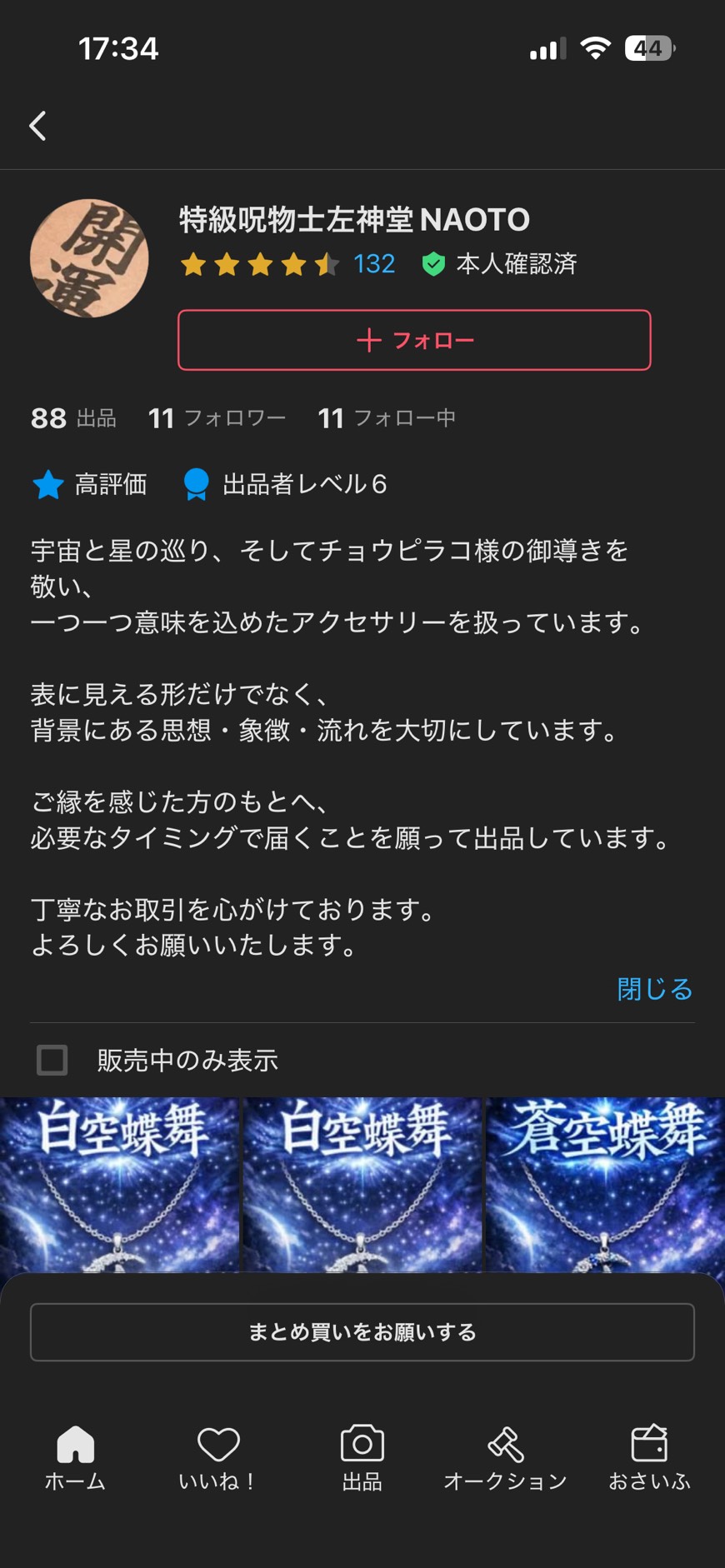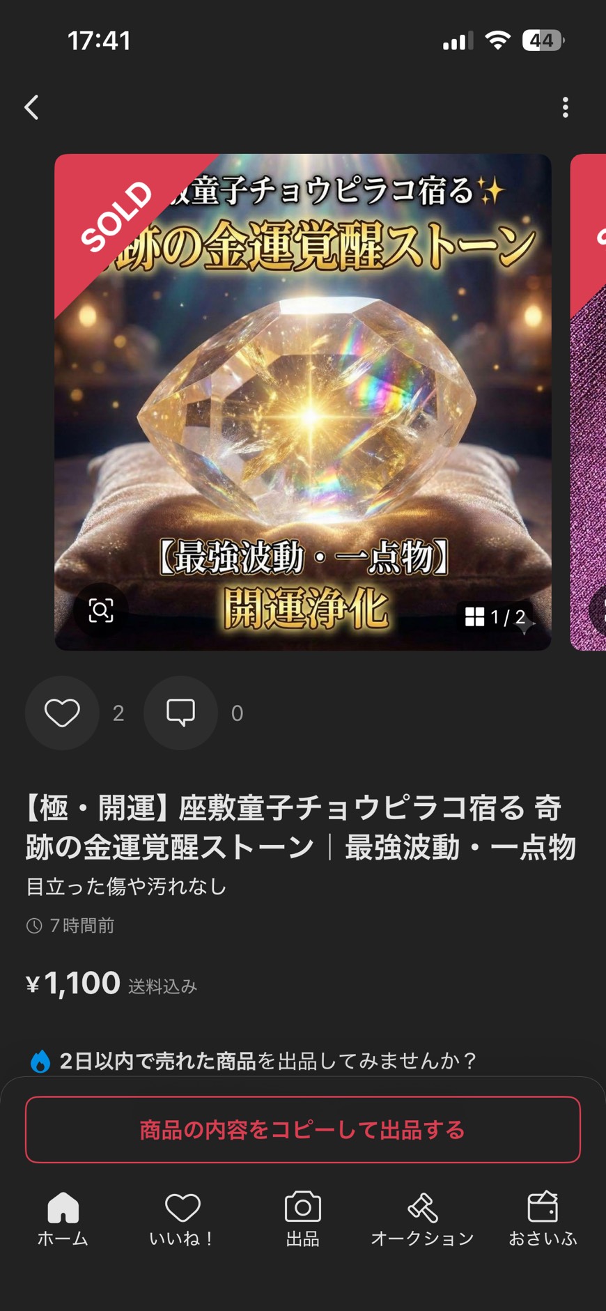 次に、メルカリでスピリチュアル商品を眺めていると目にする
