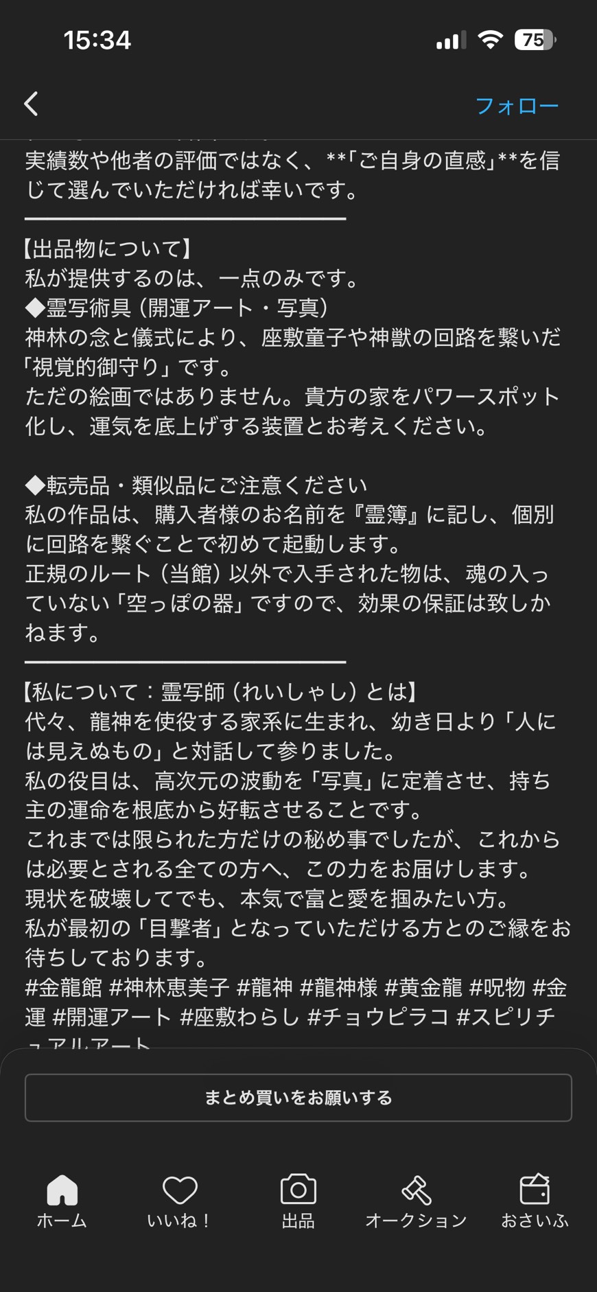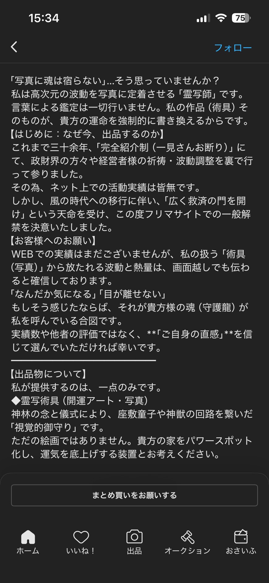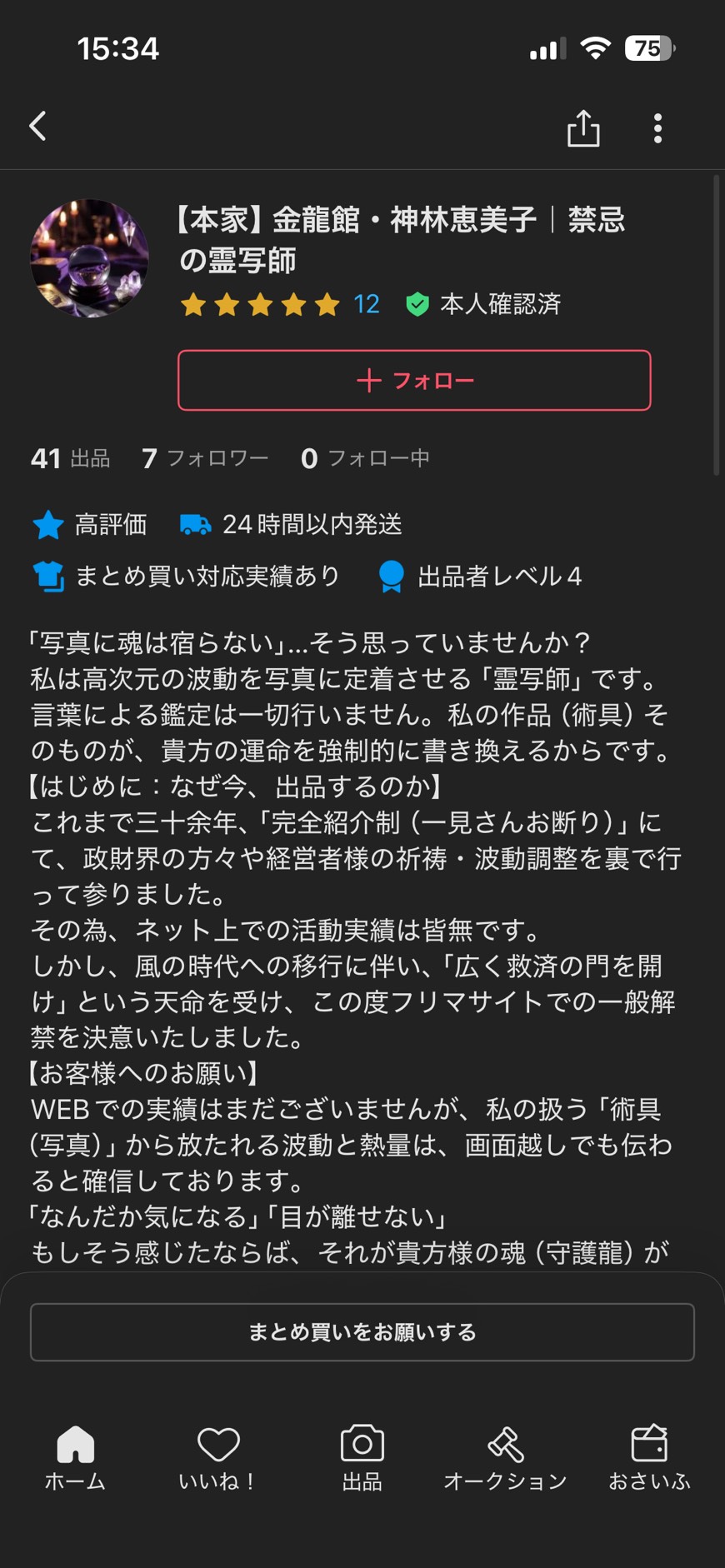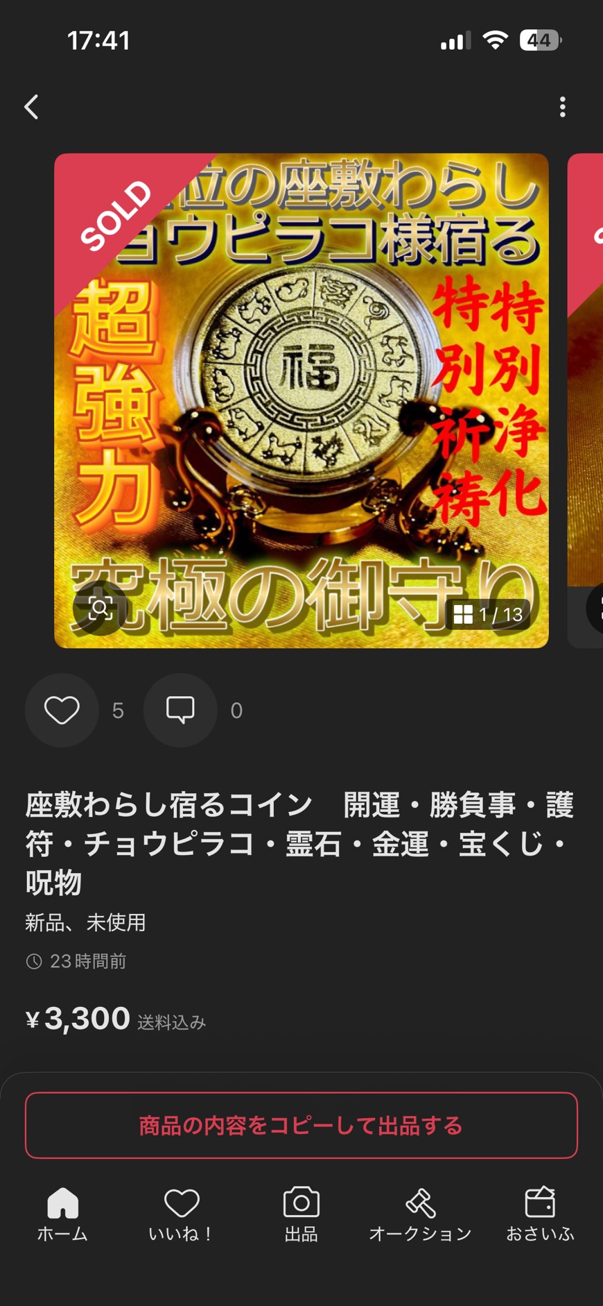 次に、メルカリでスピリチュアル商品を眺めていると目にする